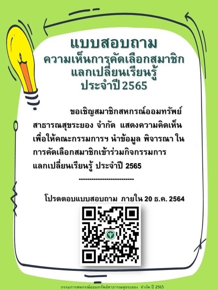 สำรวจความคิดเห็นข้อมูลแนวทางการคัดเลือกสมาชิกเข้าร่วมแลกเปลี่ยนเรียนรู้ ประจำปี 2565