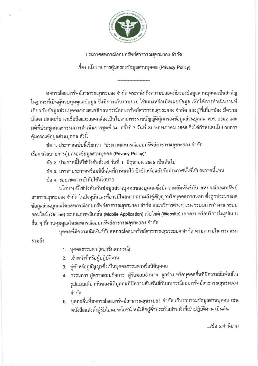 สหกรณ์ออมทรัพย์สาธารณสุขระยอง จำกัด