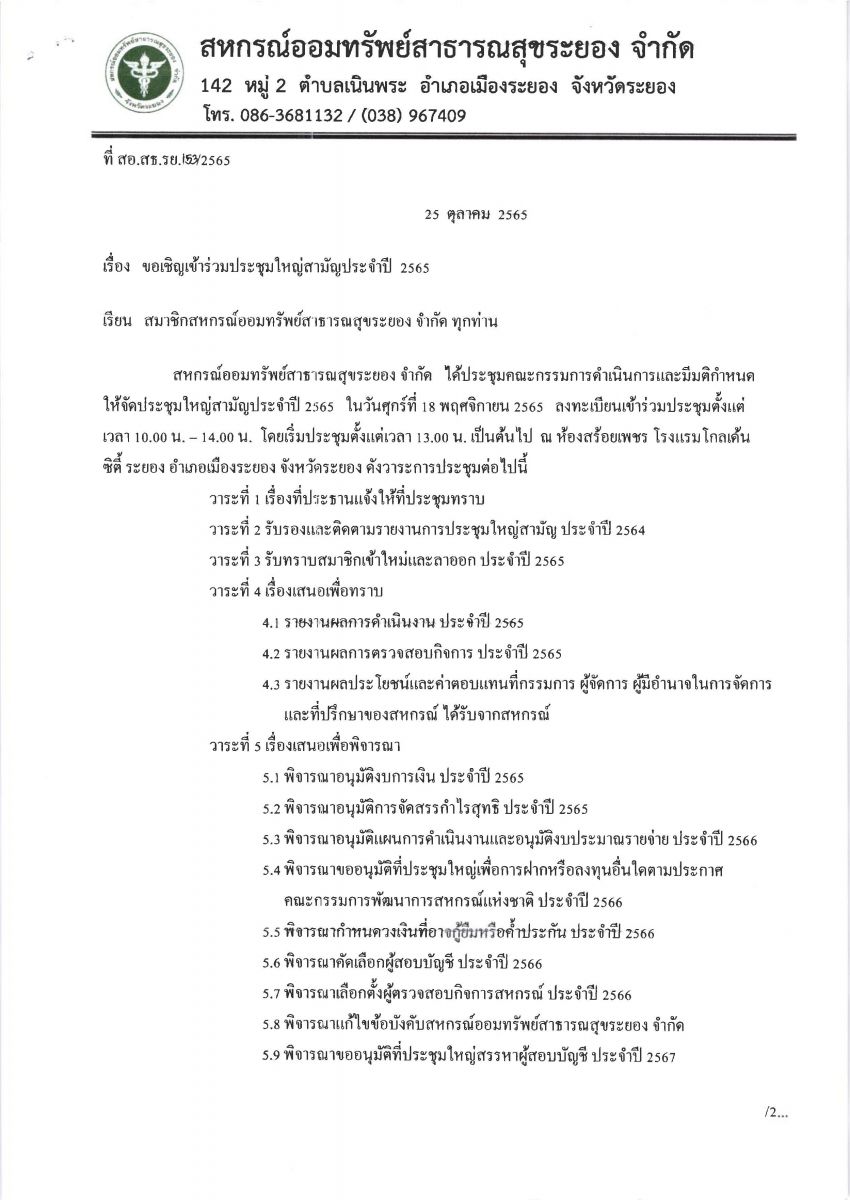 ขอเชิญประชุมใหญ่สามัญประจำปี 2565