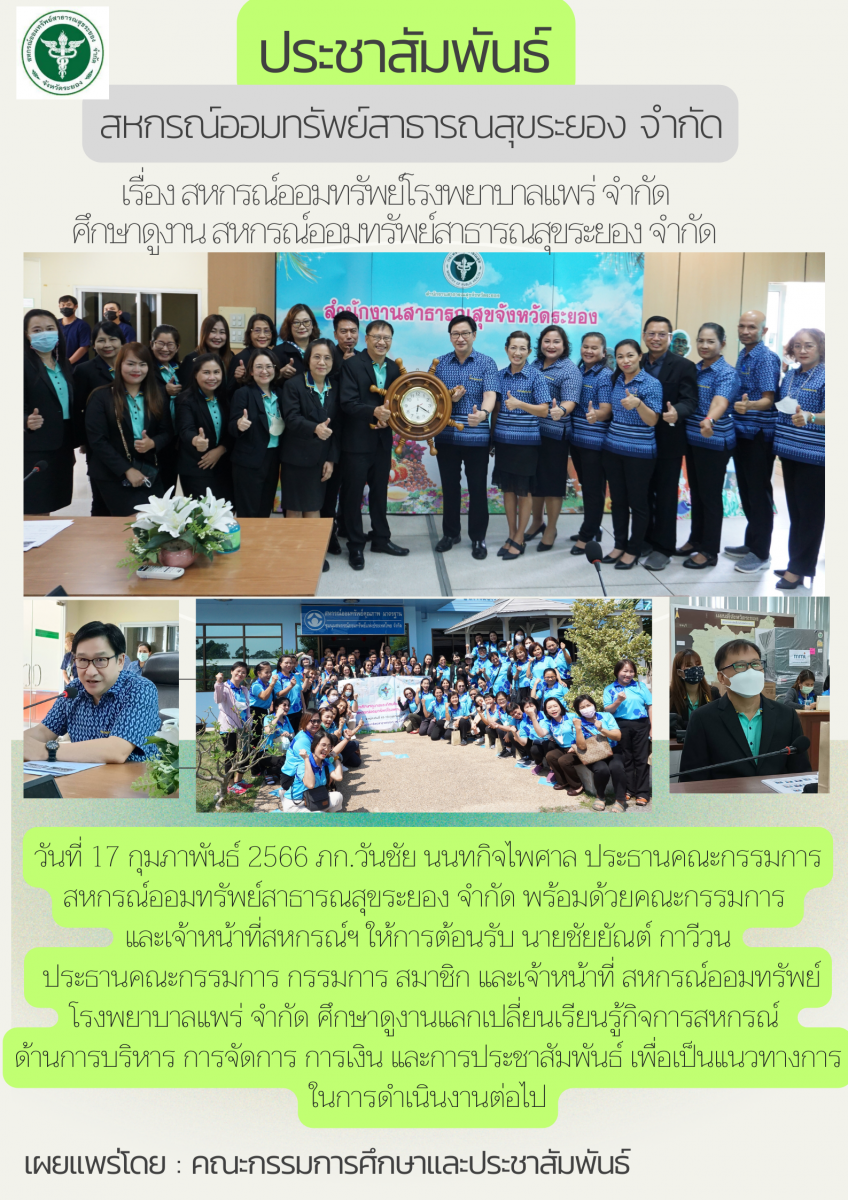 รับคณะศึกษาดูงานจาก สอ.รพ.แพร่ จำกัด