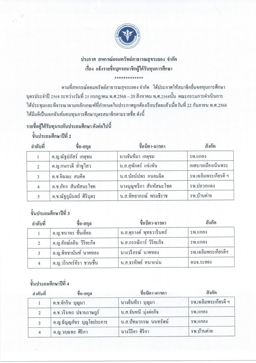 รายชื่อผู้ได้รับทุนการศึกษา ประจำปี 2566