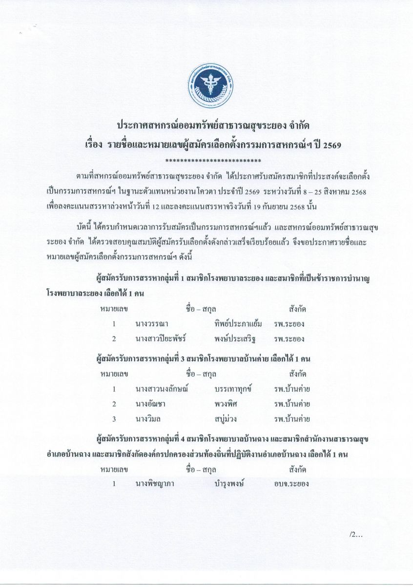 สหกรณ์ออมทรัพย์สาธารณสุขระยอง จำกัด
