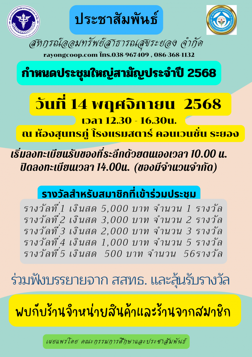 กำหนดการและของรางวัล ประชุมใหญ่สามัญประจำปี 2568
