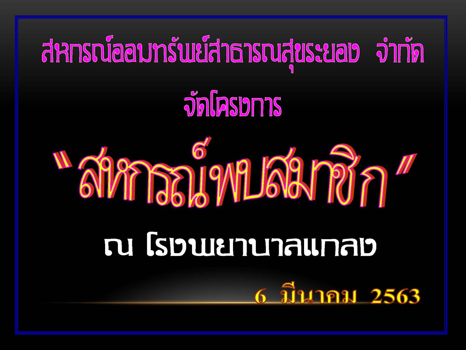 โครงการสหกรณ์พบสมาชิก ณ โรงพยาบาลแกลง