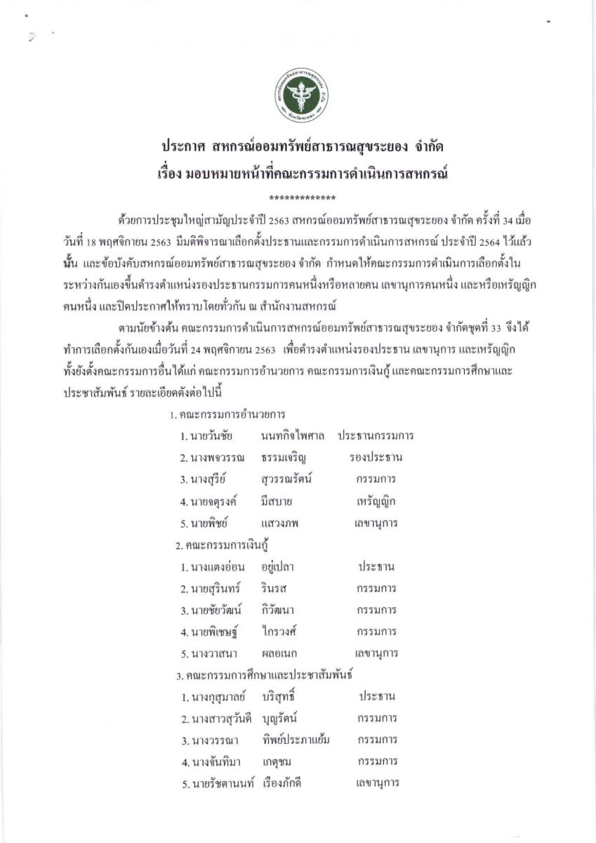 สหกรณ์ออมทรัพย์สาธารณสุขระยอง จำกัด
