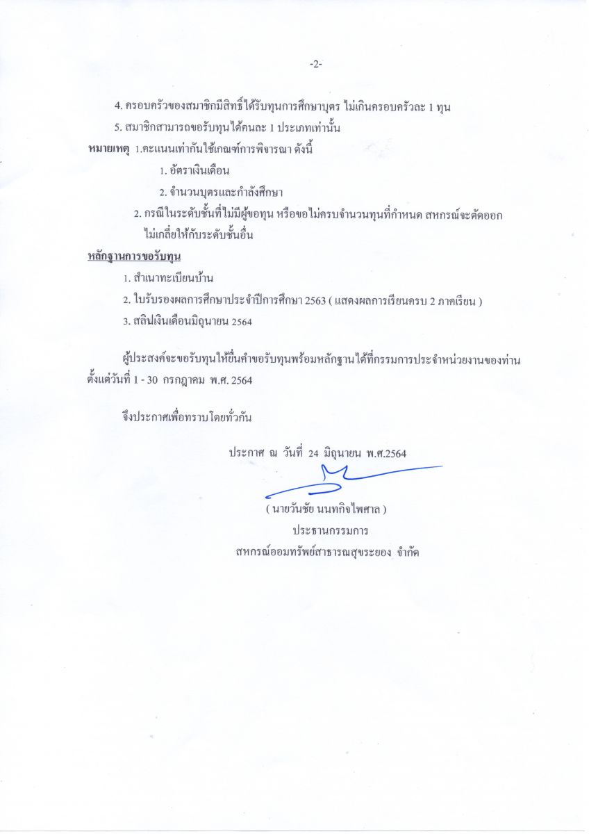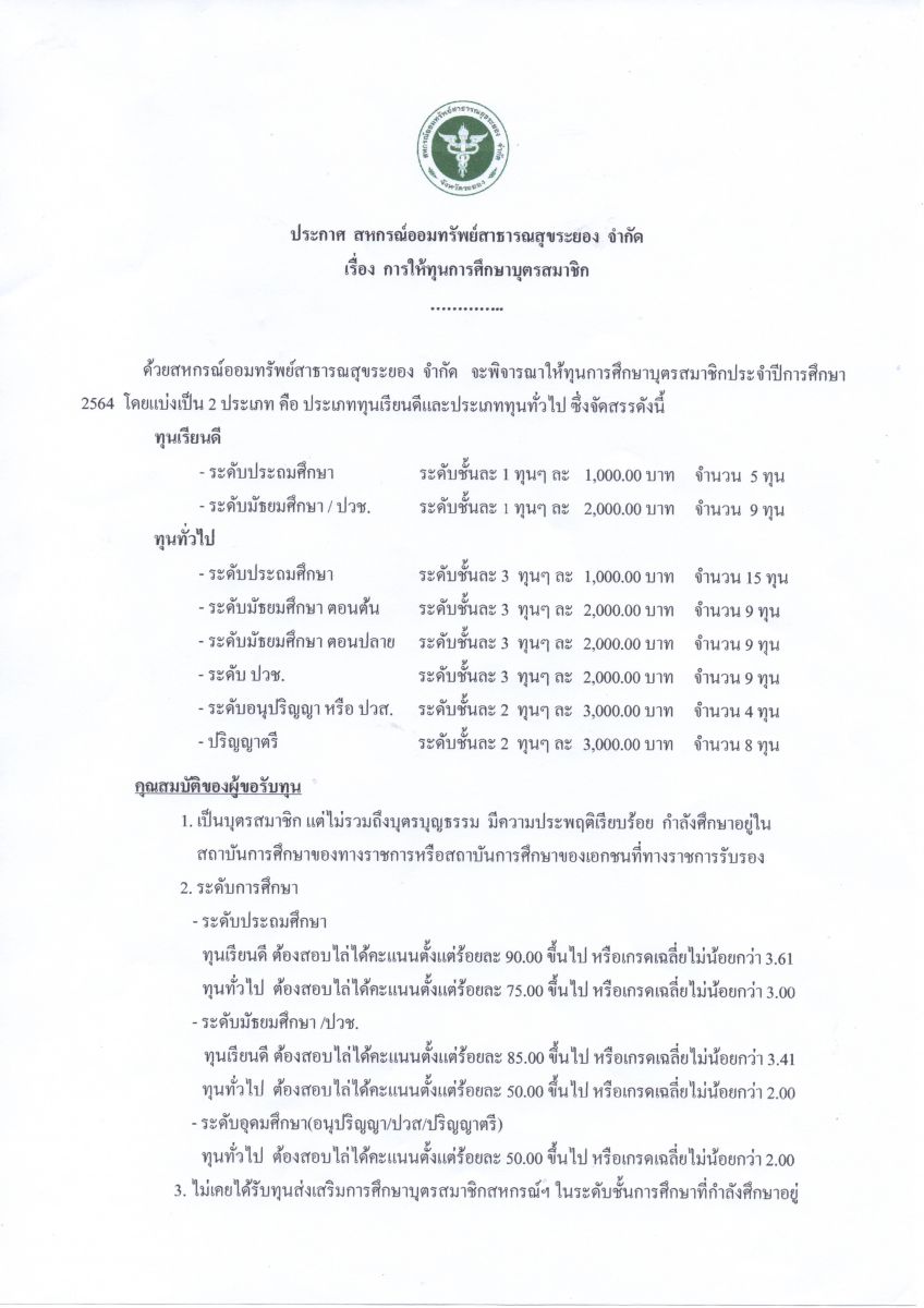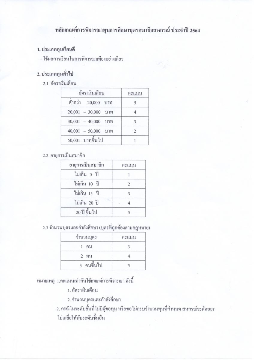 ทุนการศึกษาบุตรสมาชิกประจำปี 2564